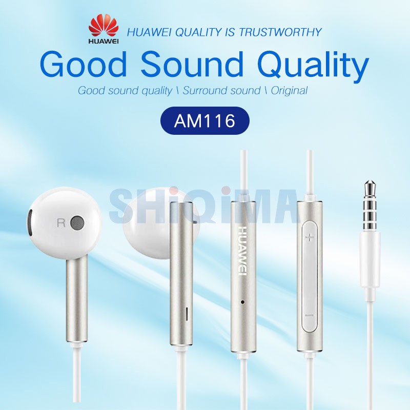 huawei am116 earphone 100 original mic volume control headphone in ear for p30 p10 mate10 nova4 4e 3
