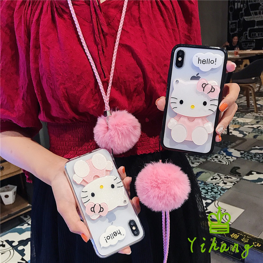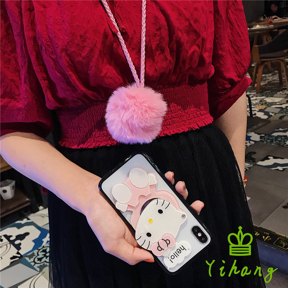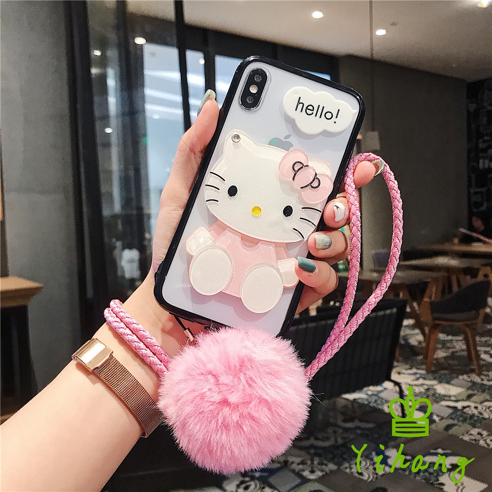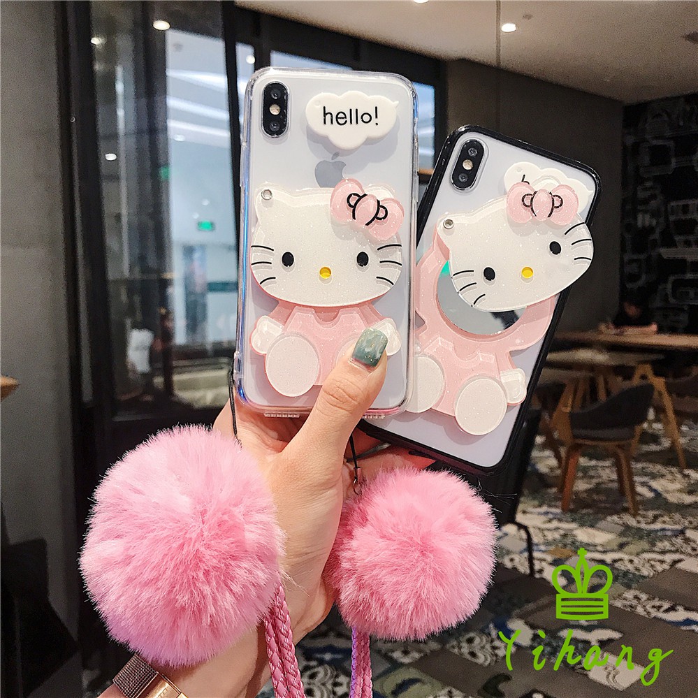 case hp bentuk hello kitty dengan cermin lanyard untuk huawei p30 pro lite y6 y7 pro 2019