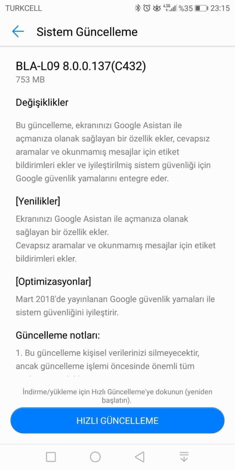 huawei mate 10 pro icin bir guncelleme