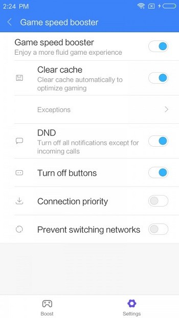 miui 9 da oyunlar icin game booster