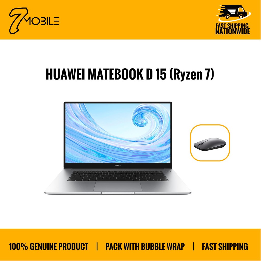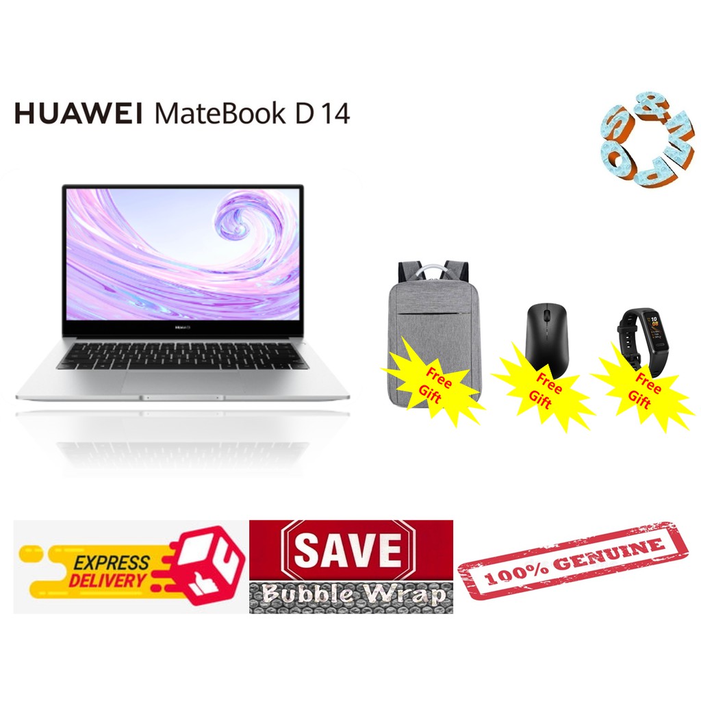 huawei matebook d 14 nbl wap9r ryzen7 laptop with free 64gb flashdisk huawei backpack wireless mouse