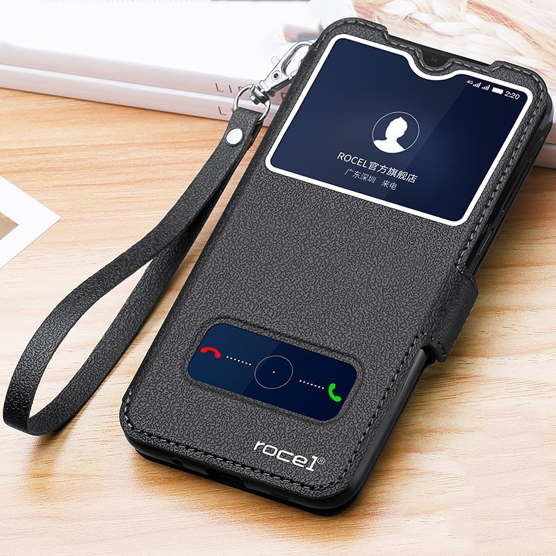 details about flip smart case for huawei y6 y7 2018 honor 9 lite clear view mirror stand cover