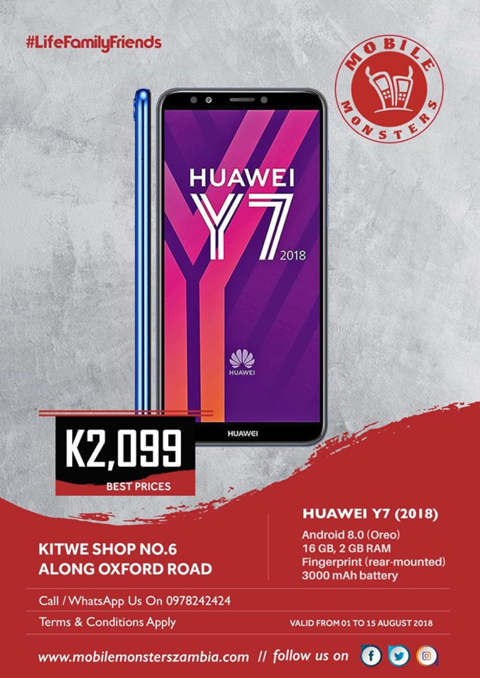 huawei y7 phone available at the kitwe